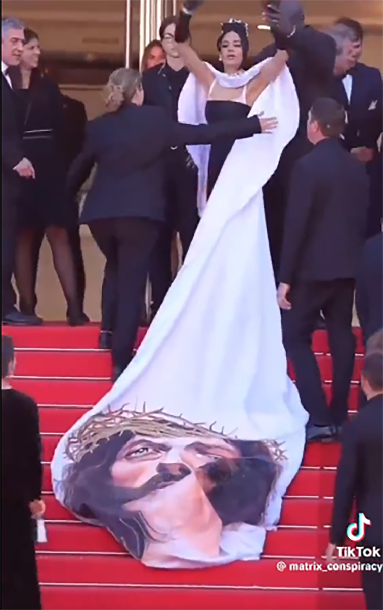 इस घटना ने मिस बी कन्वर्टेड का ध्यान खींचा, जो खुद को “पश्चाताप करने वाली पापी, मसीह में परिवर्तित” बताती हैं। उन्होंने सोशल मीडिया पर इस उत्सव की आलोचना की। “कान्स फिल्म फेस्टिवल ने यह सुनिश्चित करने की पूरी कोशिश की कि जियानिना अजार (टावेरस की ड्रेस की डिजाइनर) रेड कार्पेट पर जीसस को प्रदर्शित न कर सकें। मेरी बेबाकी के लिए क्षमा करें, लेकिन हॉलीवुड शैतानवादियों, पीडोफाइल और ग्रह पर सबसे बुरे लोगों से भरा हुआ है। यह कोई आश्चर्य की बात नहीं है कि मसीह की छवि उनके लिए घृणित है,” उन्होंने कहा। X पर लिखा.