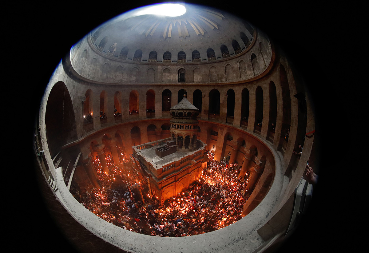 ईसाई रूढ़िवादी उपासक 27 अप्रैल, 2019 को रूढ़िवादी ईस्टर के दौरान यरूशलेम के पुराने शहर में पवित्र सेपुलचर चर्च में इकट्ठा होते समय पवित्र अग्नि से जलाई गई मोमबत्तियाँ पकड़ते हैं। – ग्यारह शताब्दियों तक इसी तरह मनाए जाने वाले समारोह को पवित्र कब्र के दोनों ओर दो गुहाओं में “पवित्र अग्नि” की उपस्थिति से चिह्नित किया जाता है। | गेटी इमेजेज़ के माध्यम से थॉमस कॉक्स/एएफपी
